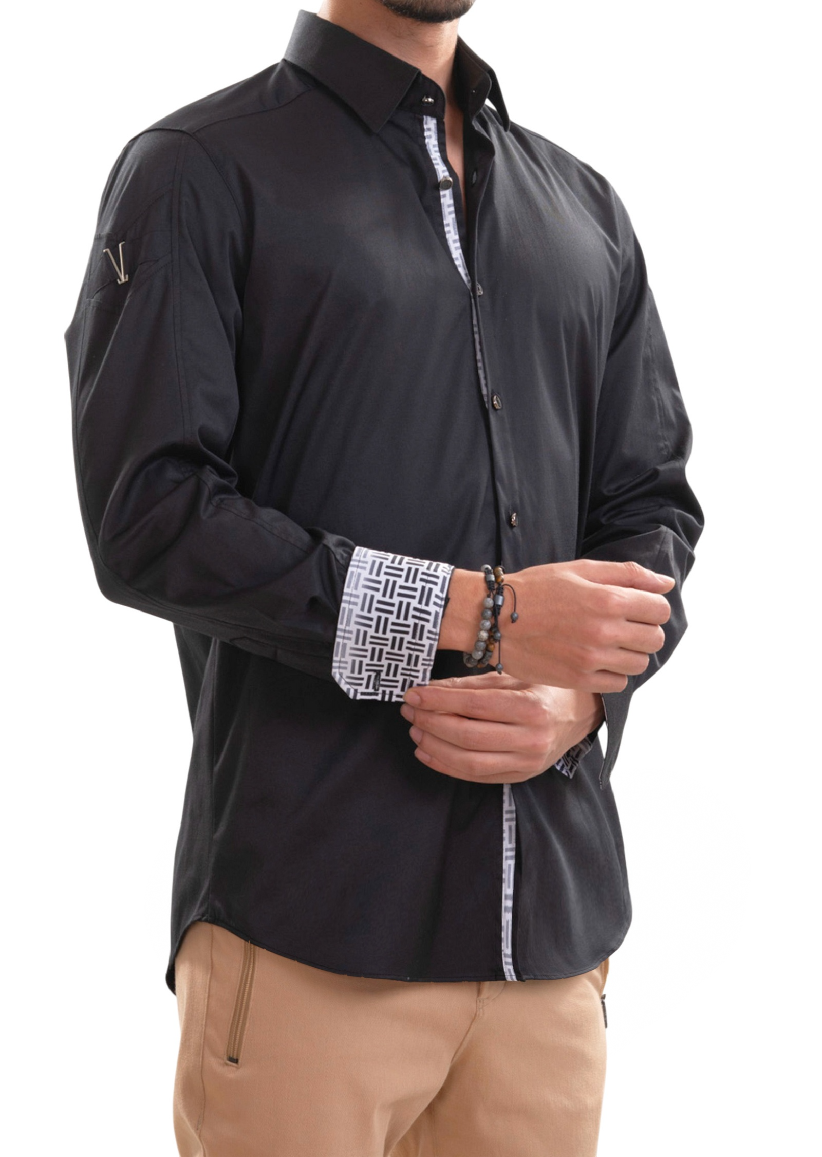 - Black silver v-metal on both sleeve - white black print fabric contrast detailed shirt