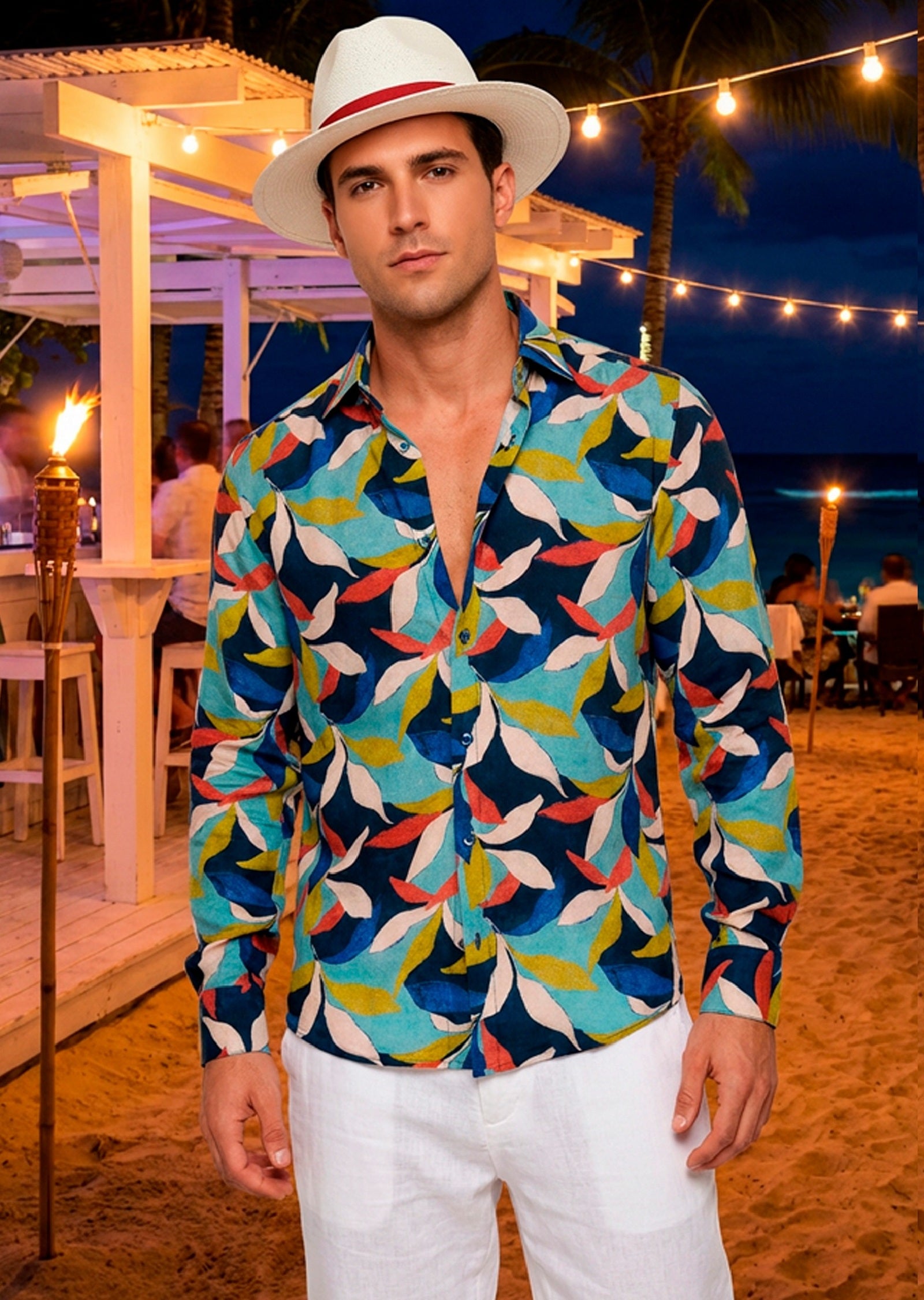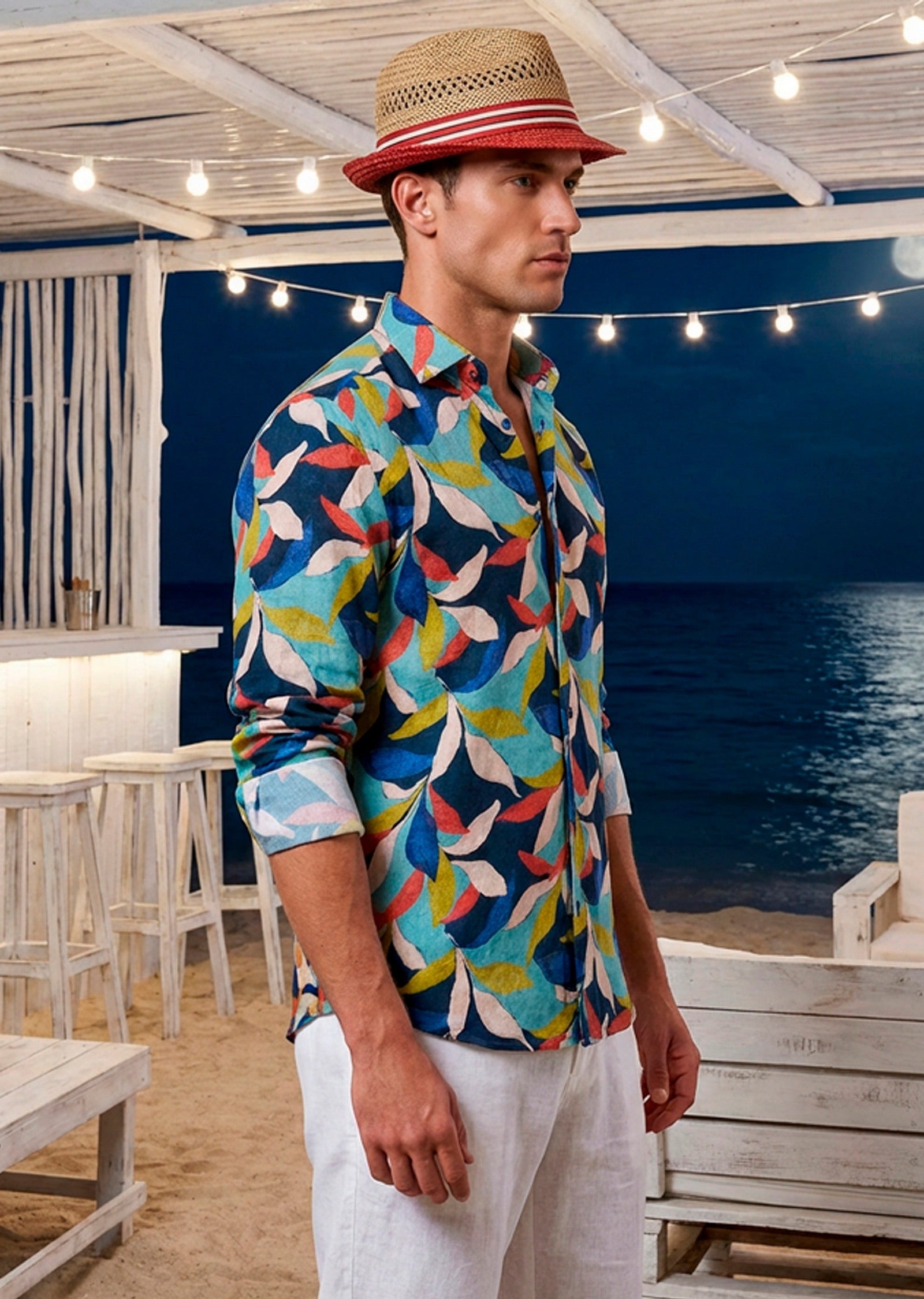 - A vibrant print lights up a soft cotton marked with cool contrast trim at the collar and cuffs. Layer it perfectly under a jacket and Offset the look with a pair of contrasting pants