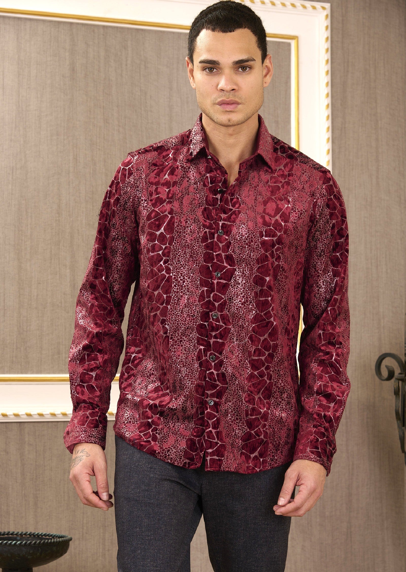 - Plush, dense-pile velvet creates a delicious texture that will make you love this button-up shirt. A spread collar and long sleeves keep you looking put-together and polished