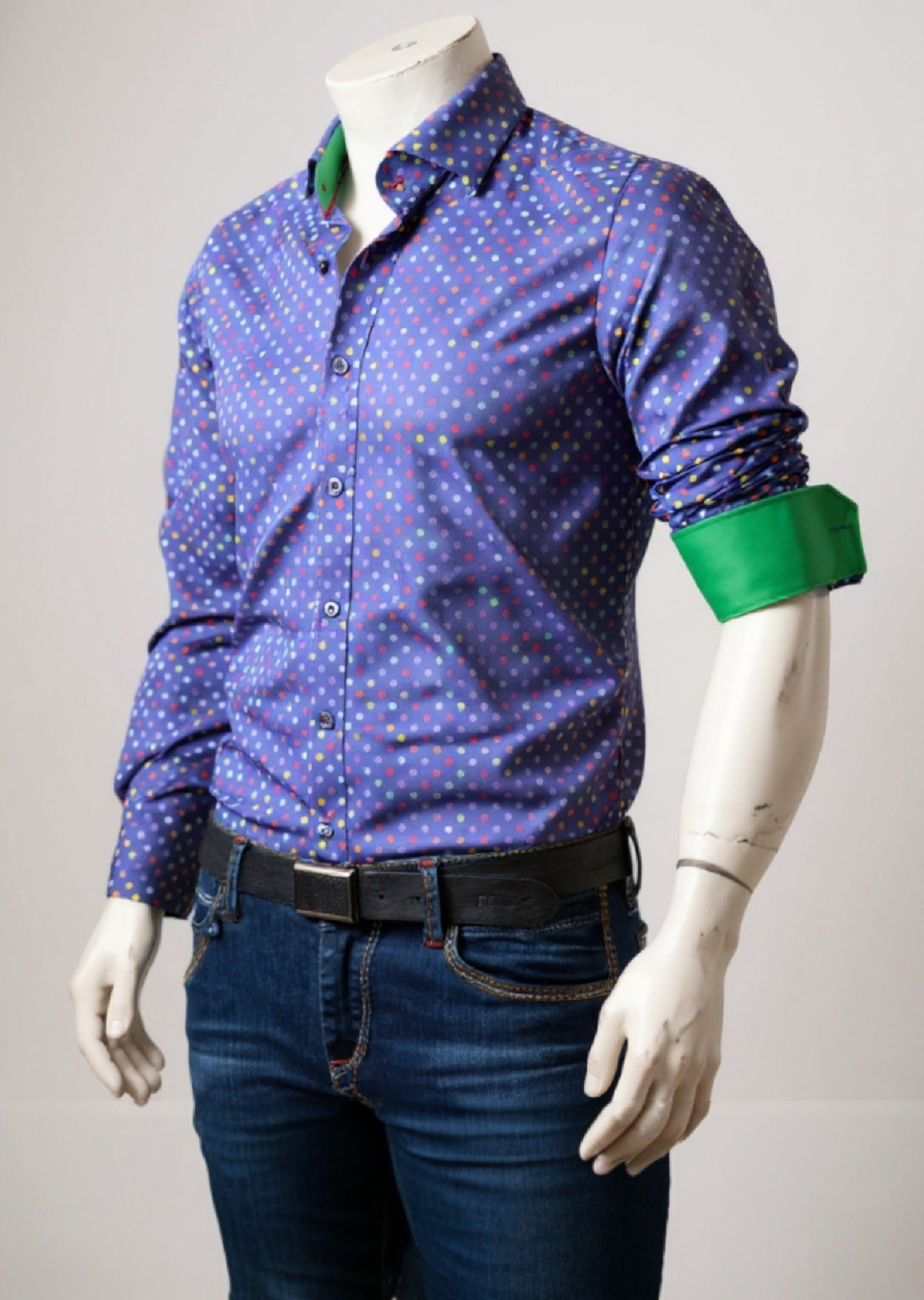 - A vibrant print lights up a soft cotton marked with cool contrast trim at the collar and cuffs. Layer it perfectly under a jacket and Offset the look with a pair of contrasting jeans