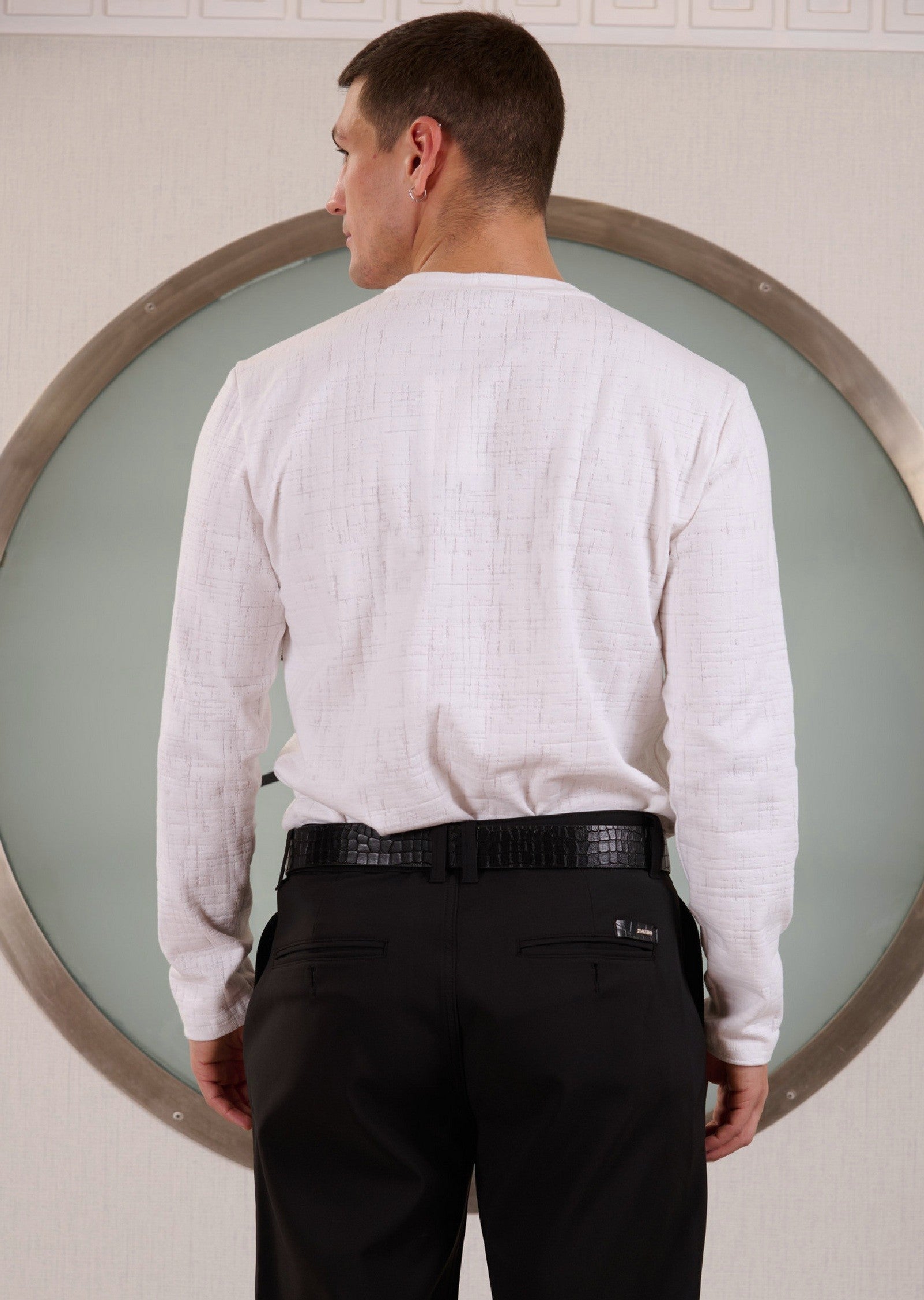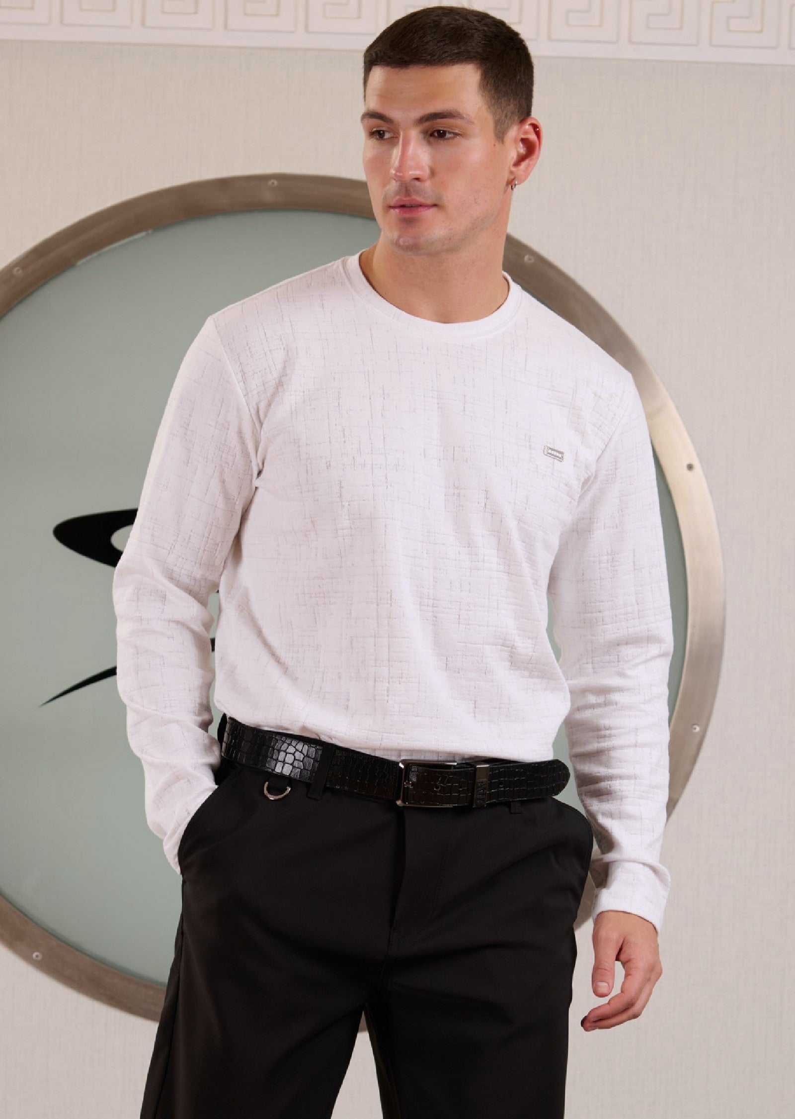Crew neck is constructed from a stretch knit with a soft and luxurious feel for all day