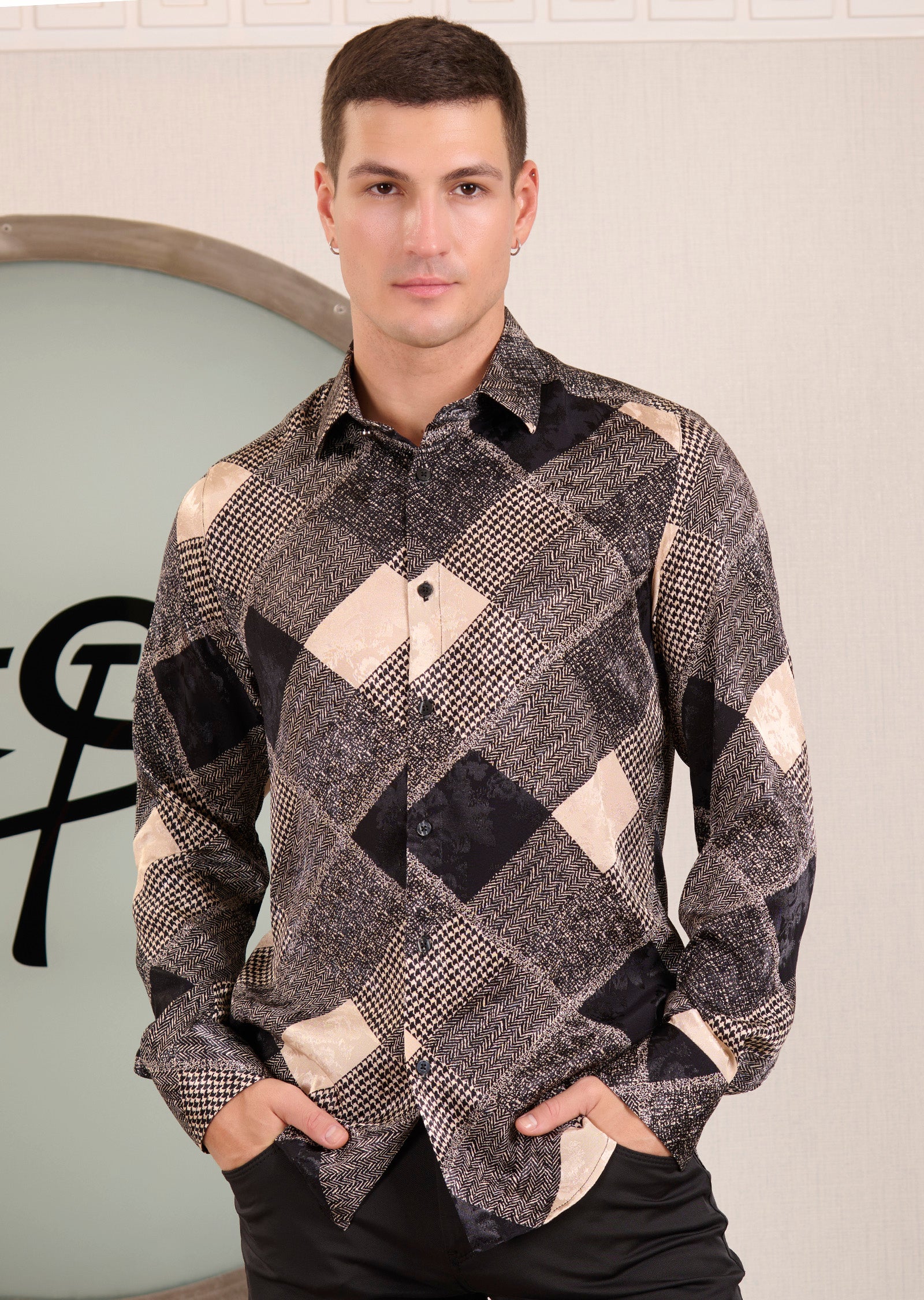 - Shirt--made from midweight, knit jacquard fabrication--to be your go-to layer this season. This fitted piece is perfect for ensuring off-duty looks stay smart