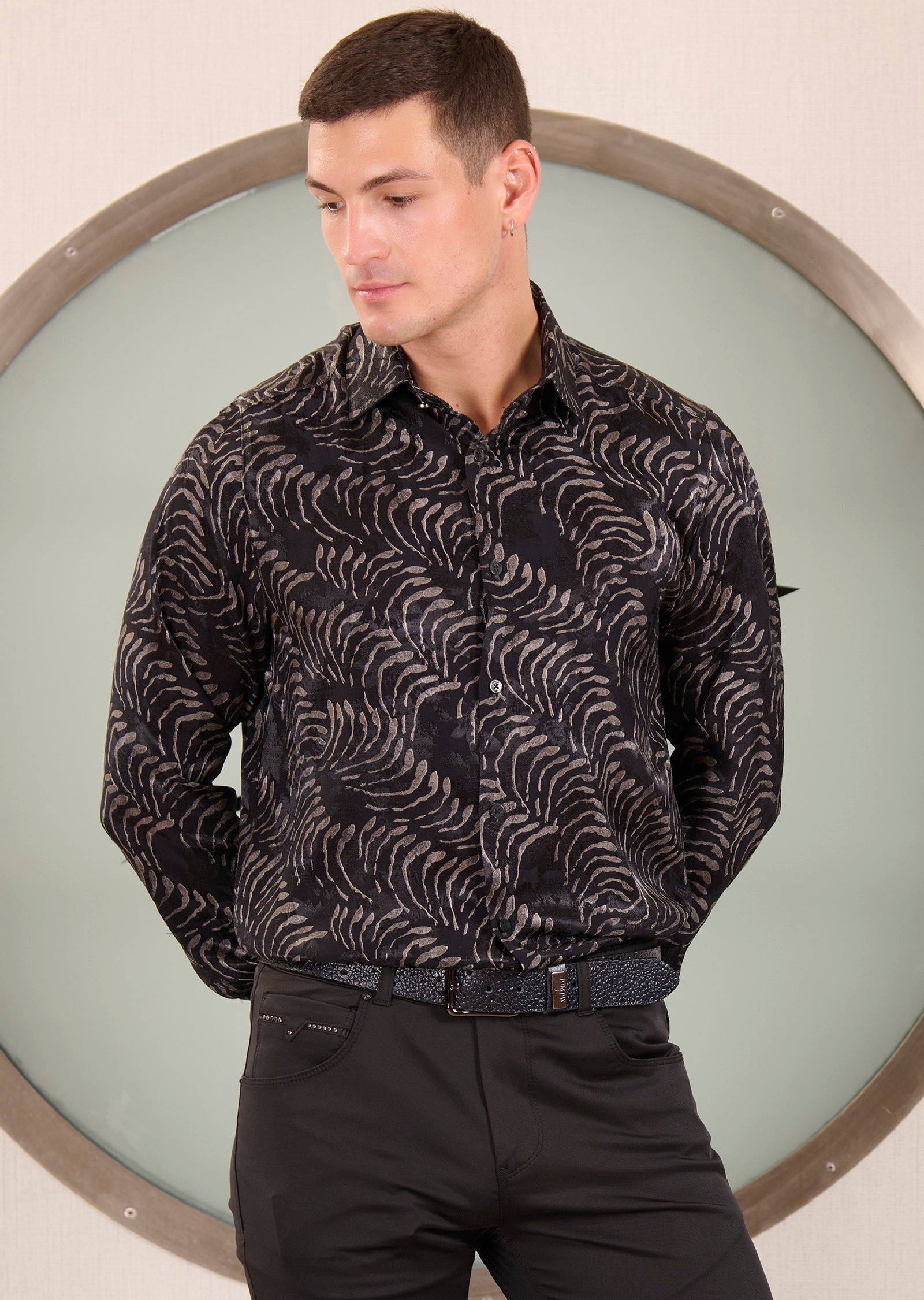 - Shirt--made from midweight, knit jacquard fabrication--to be your go-to layer this season. This fitted piece is perfect for ensuring off-duty looks stay smart