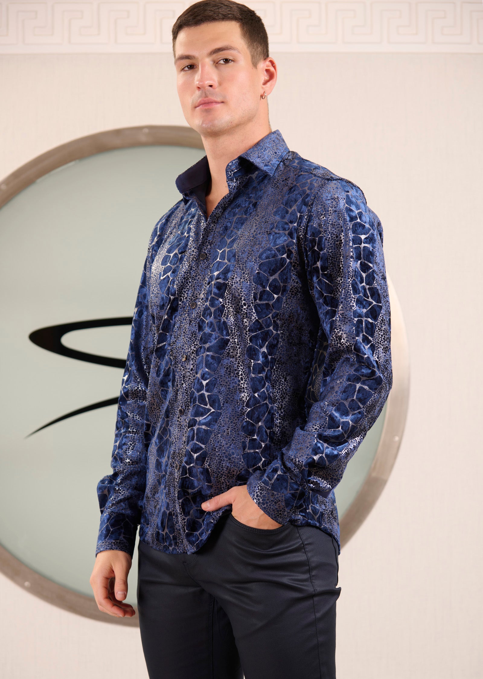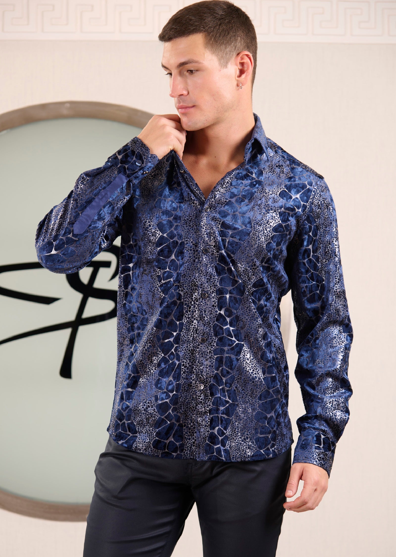 - Plush, dense-pile velvet creates a delicious texture that will make you love this button-up shirt. A spread collar and long sleeves keep you looking put-together and polished