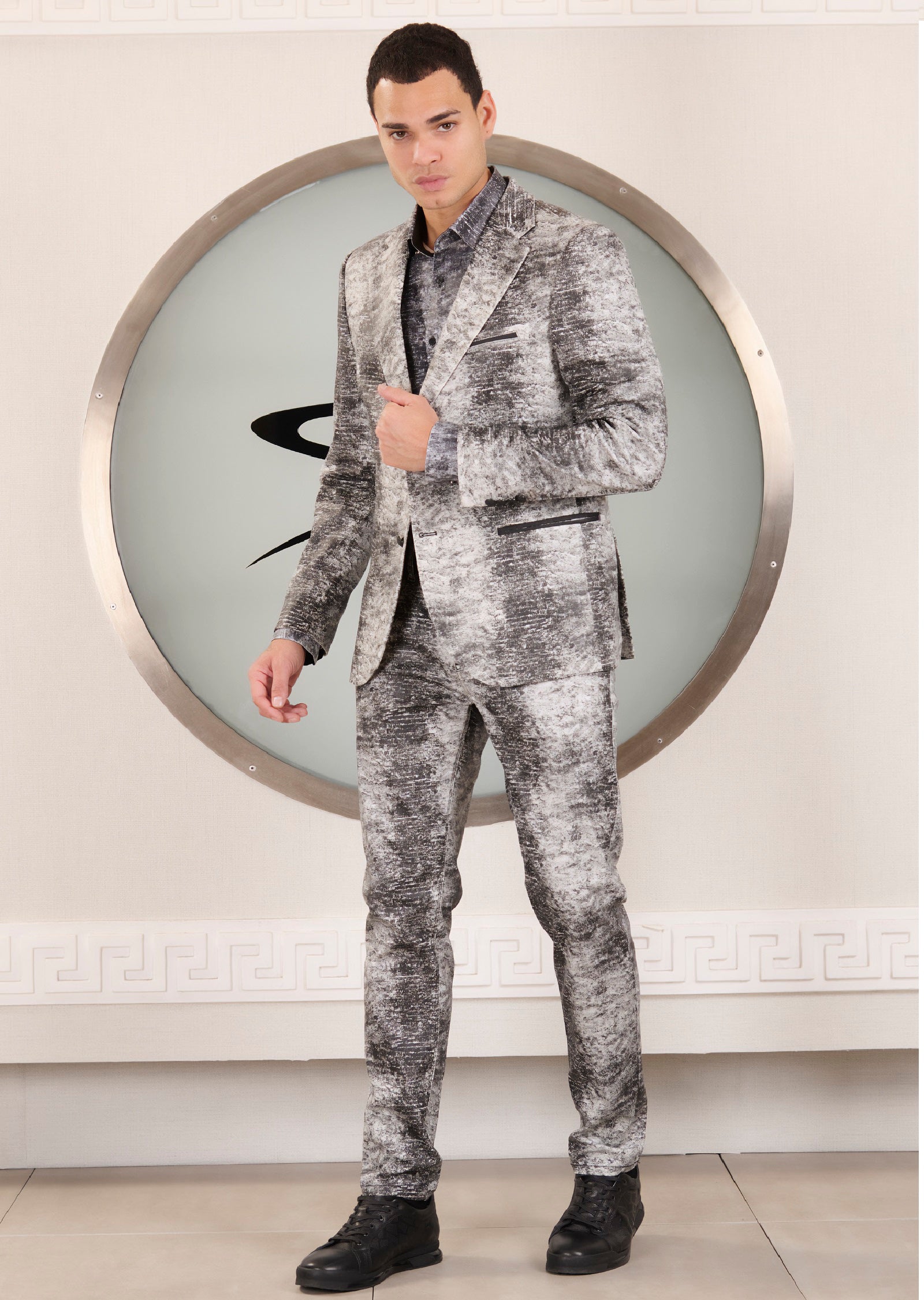 - This sleek white black faded abstract 2-pieces suit features everything you want- stretch fabric, standout style, and all-day comfort to keep you stylish and comfortable. Ready when you are. look sharp all-day, anytime, anywhere
