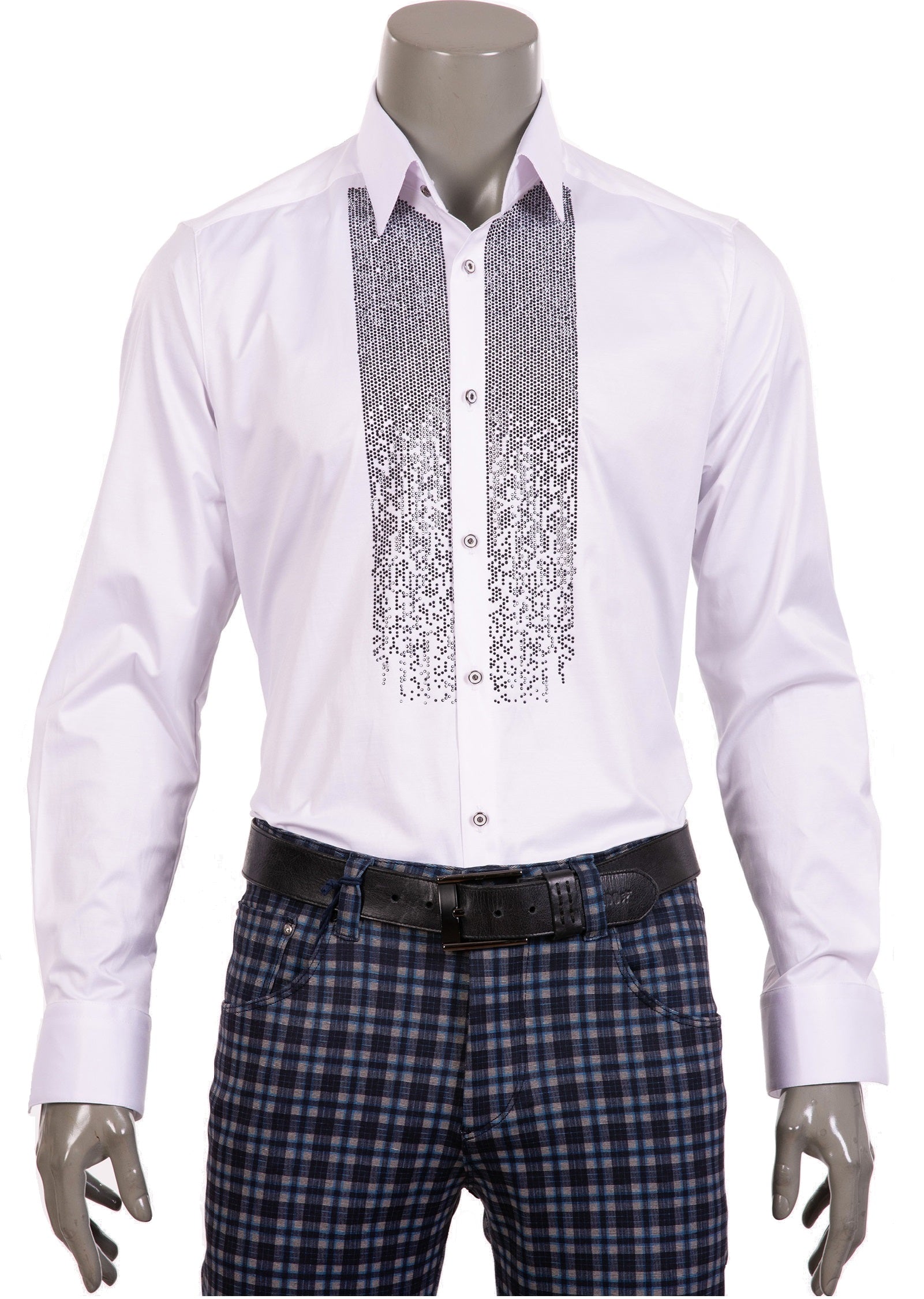 Micro-studded rhinestone shirt. A modern shirt with an unexpected edge. This white cotton shirt from Mondo is embellished with micro rhinestone in a black-tone. Looking sharp.