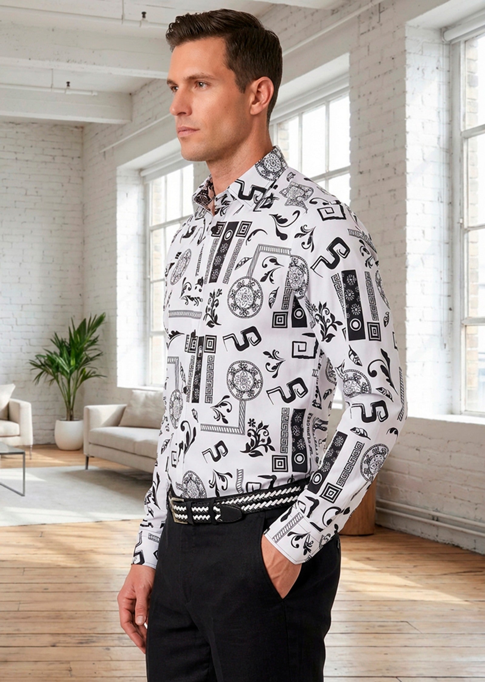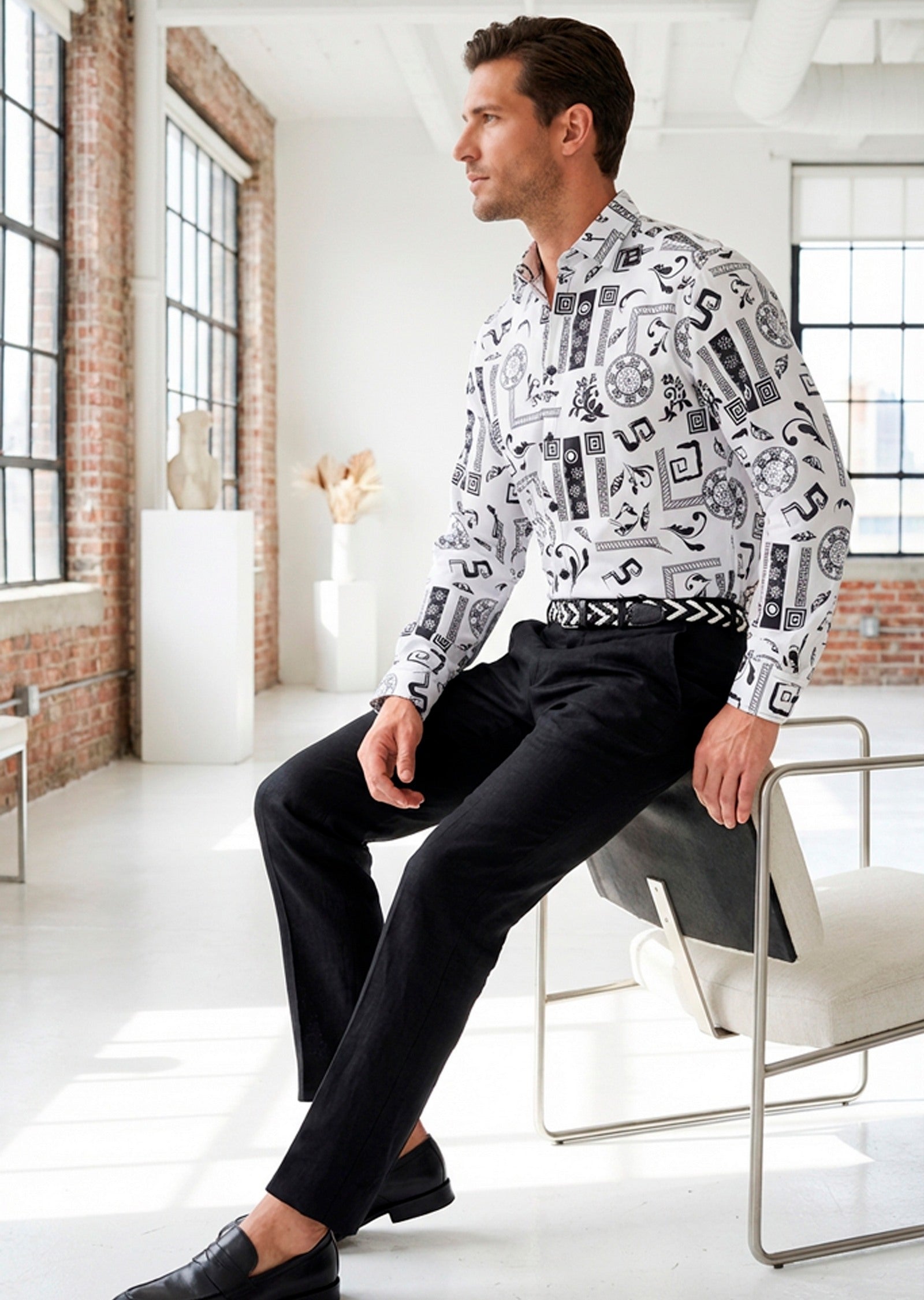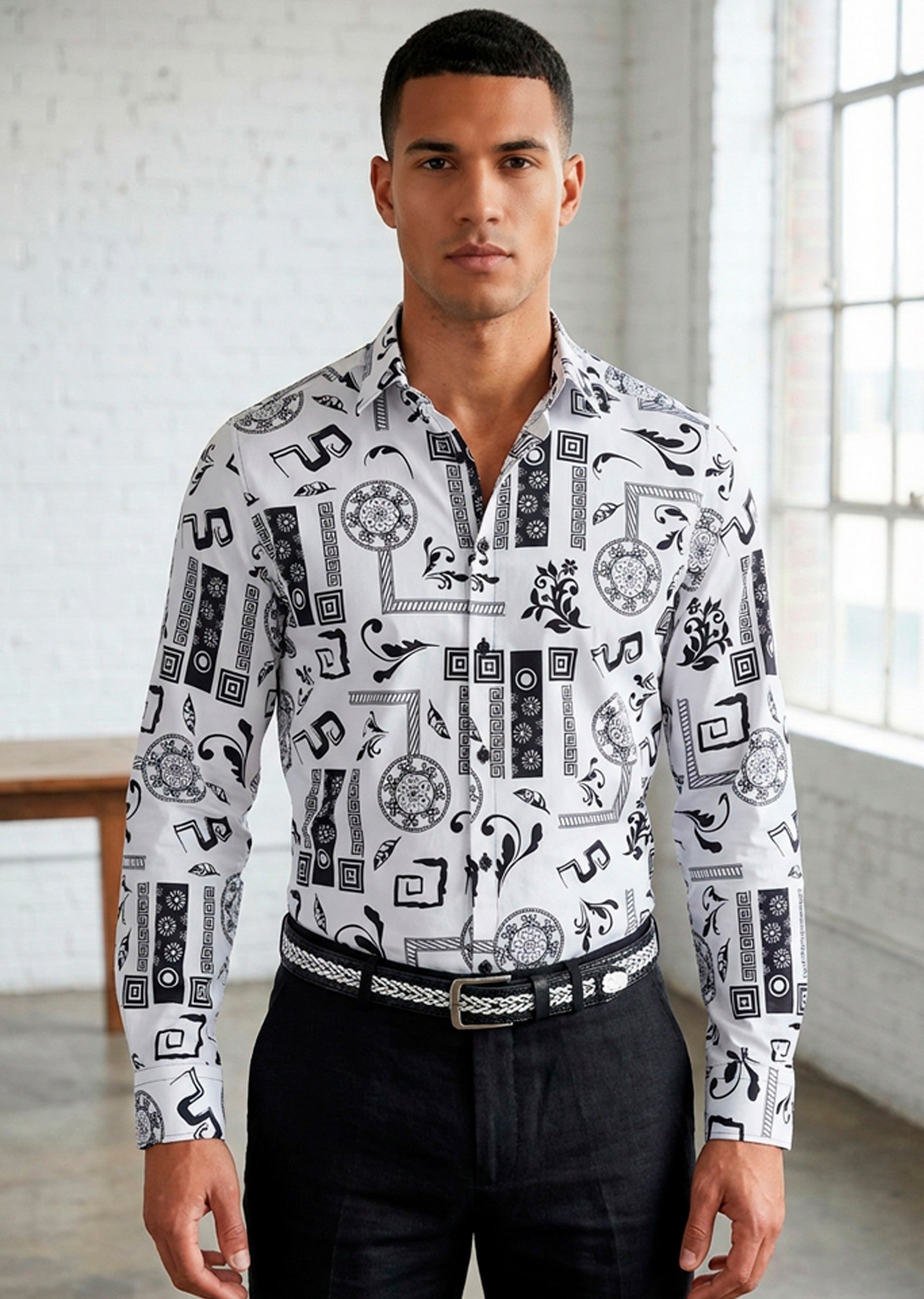 - A bold print defines a head-turning shirt shaped from smooth silky cotton