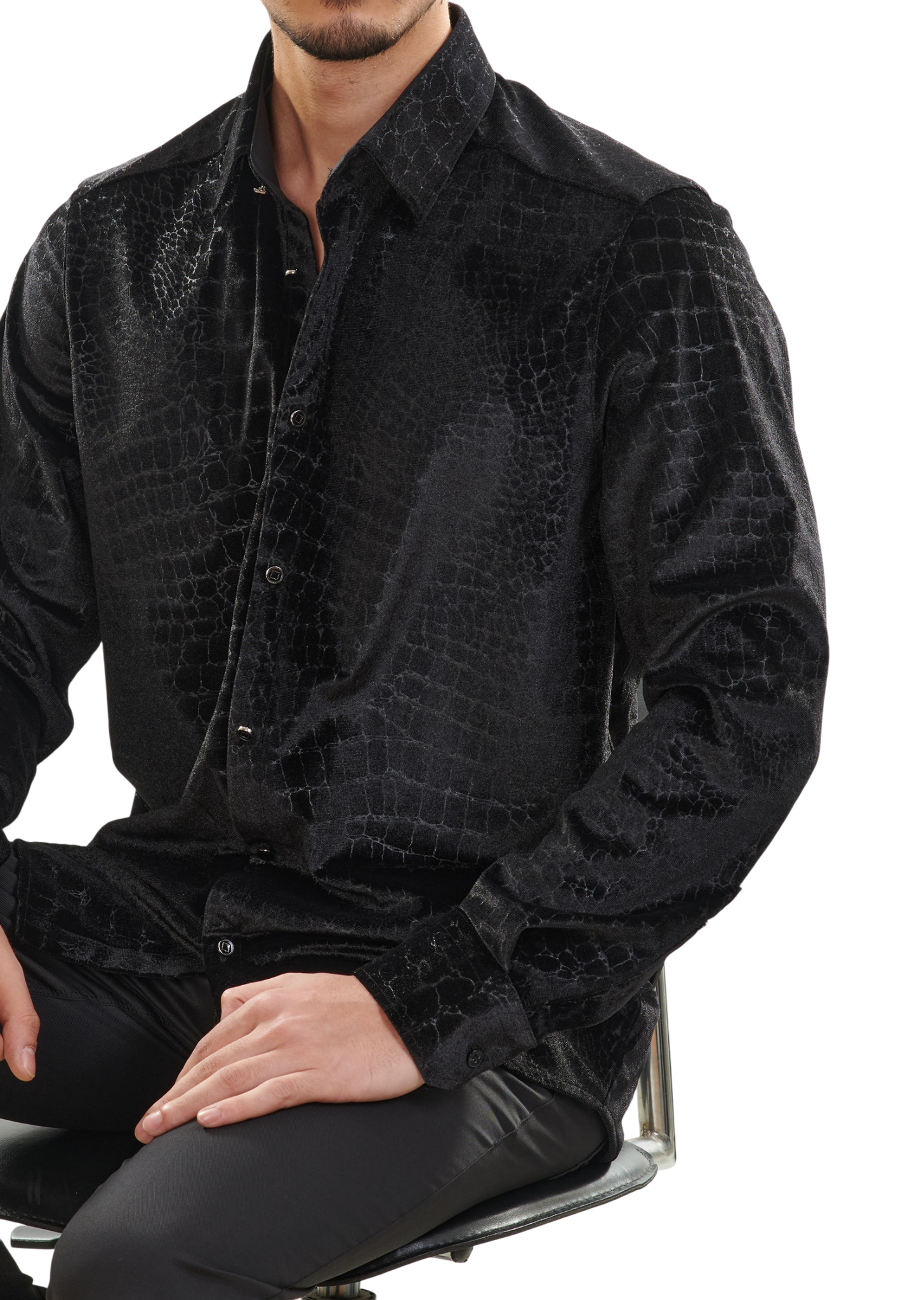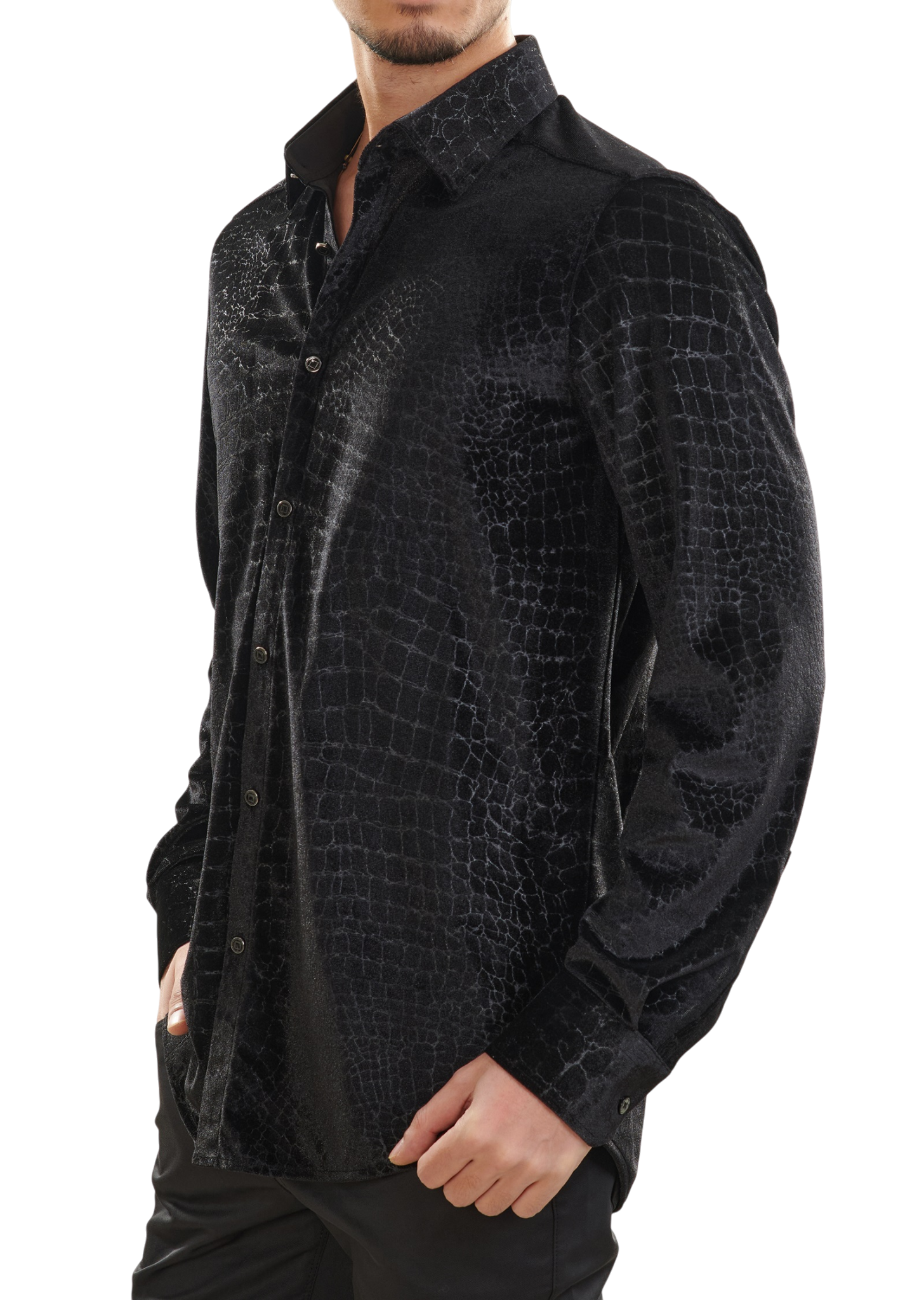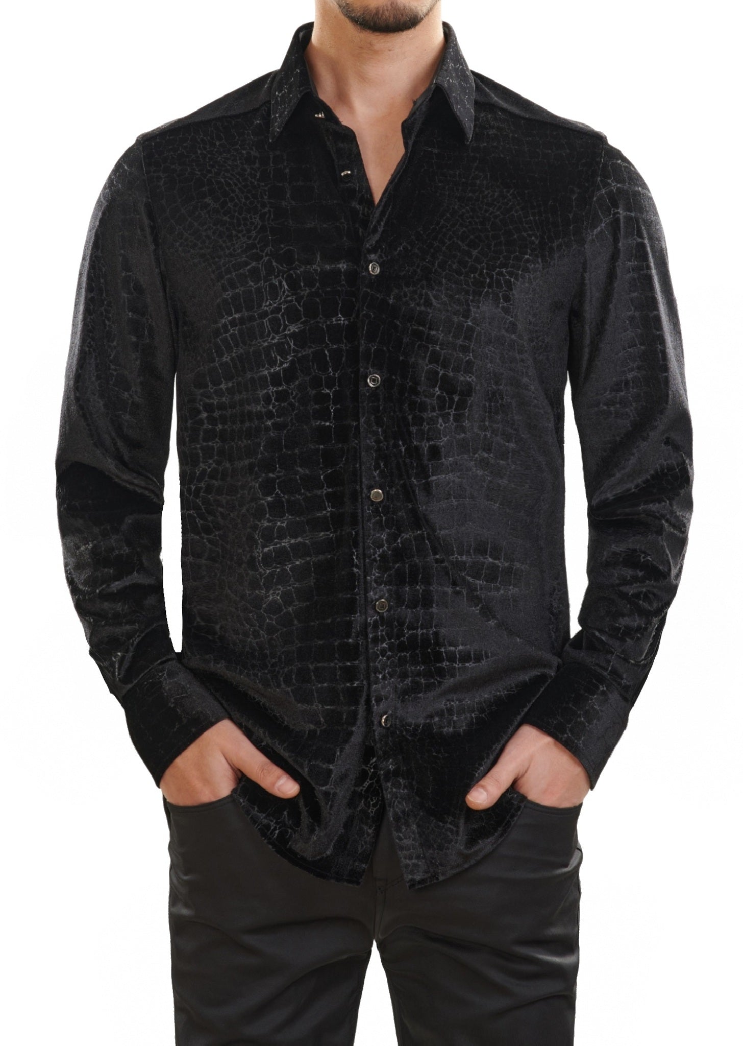 - Plush, dense-pile velvet creates a delicious texture that will make you love this button-up shirt. A spread collar and long sleeves keep you looking put-together and polished