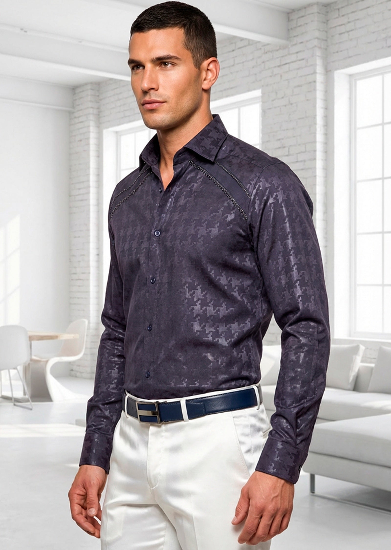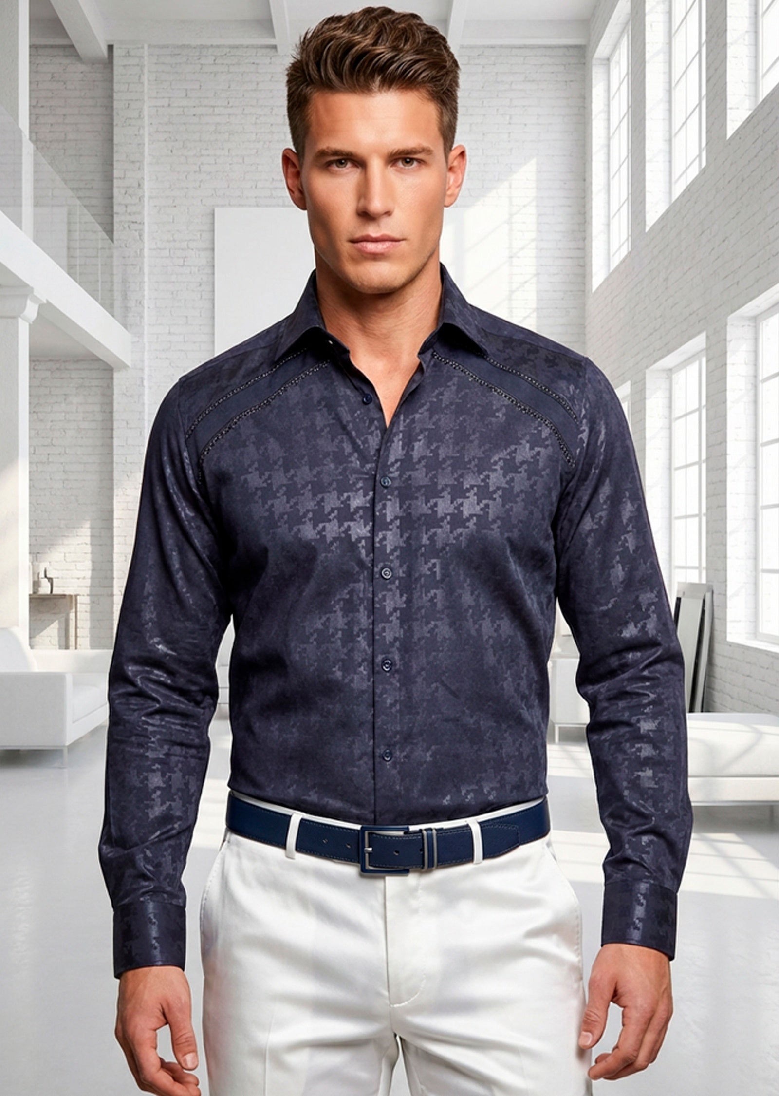 - This navy Mondo shirt adds elegance and mystery that is emblematic of Mondo's freedom, empowerment and individualism