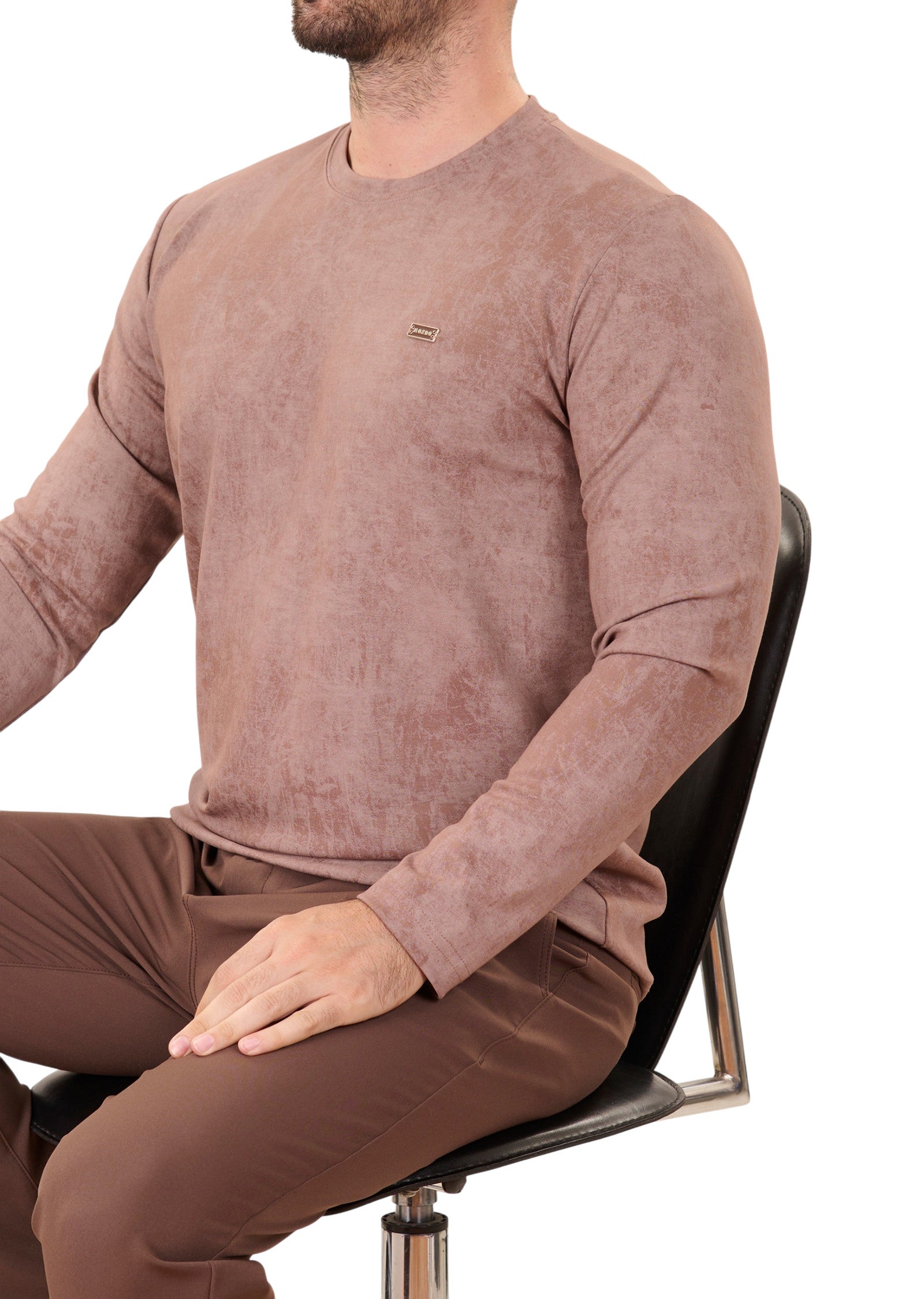 Crew neck is constructed from a stretch knit with a soft and luxurious feel for all day