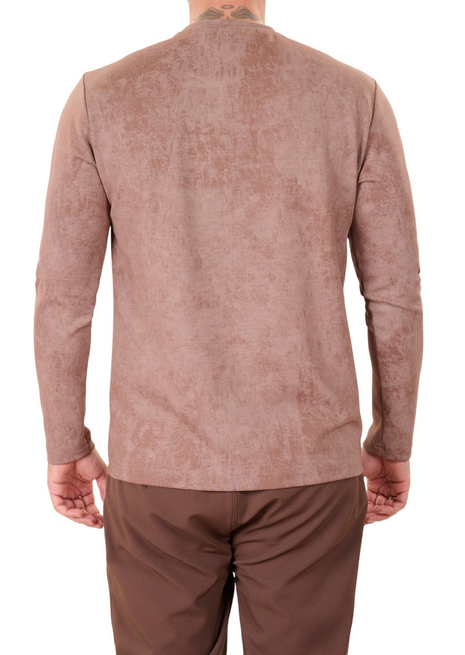 Sweater is crafted from soft interlock jersey with a subtle degraded finish for a stylish, refined look