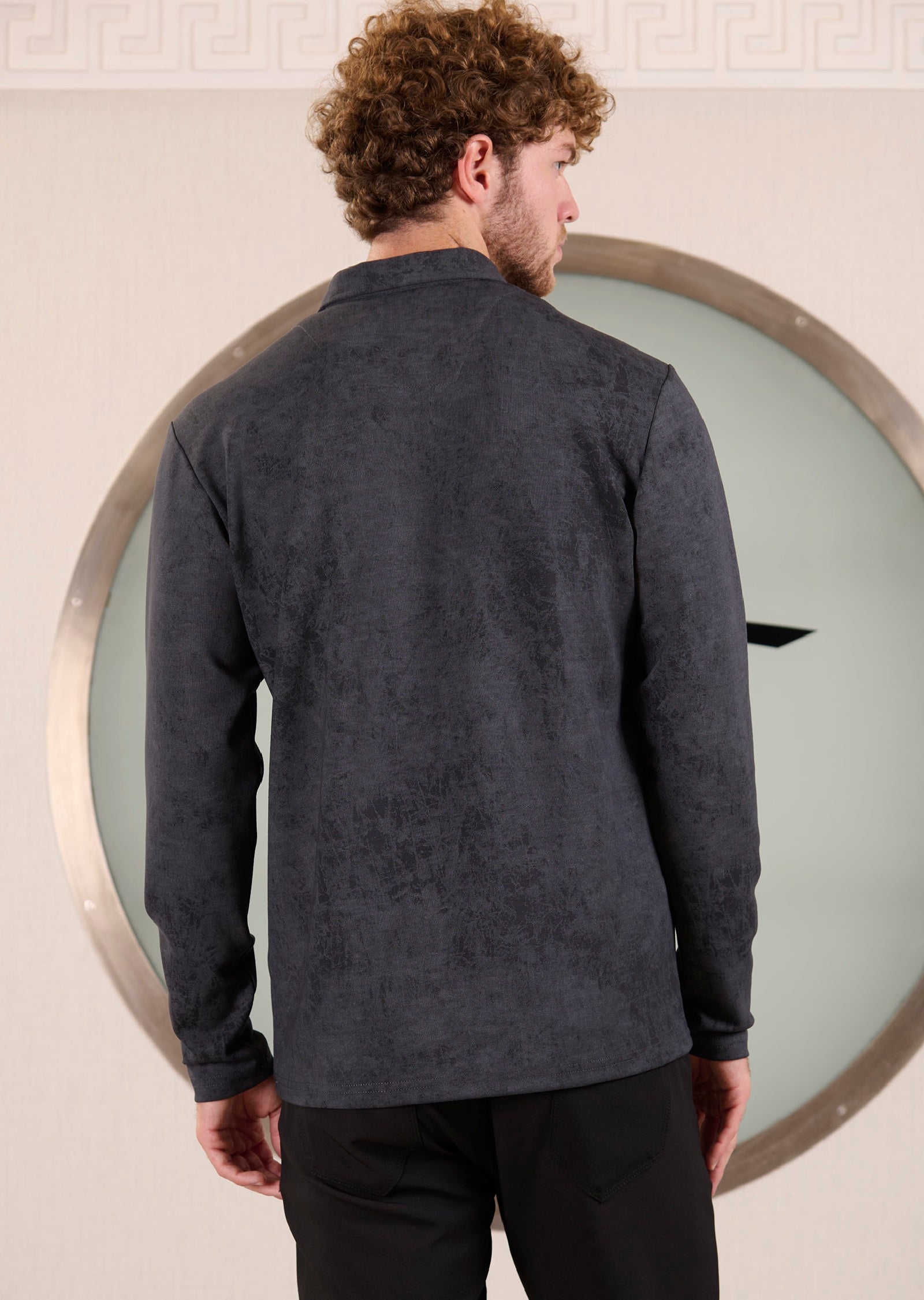 Sweater is crafted from soft interlock jersey with a subtle degraded finish for a stylish, refined look