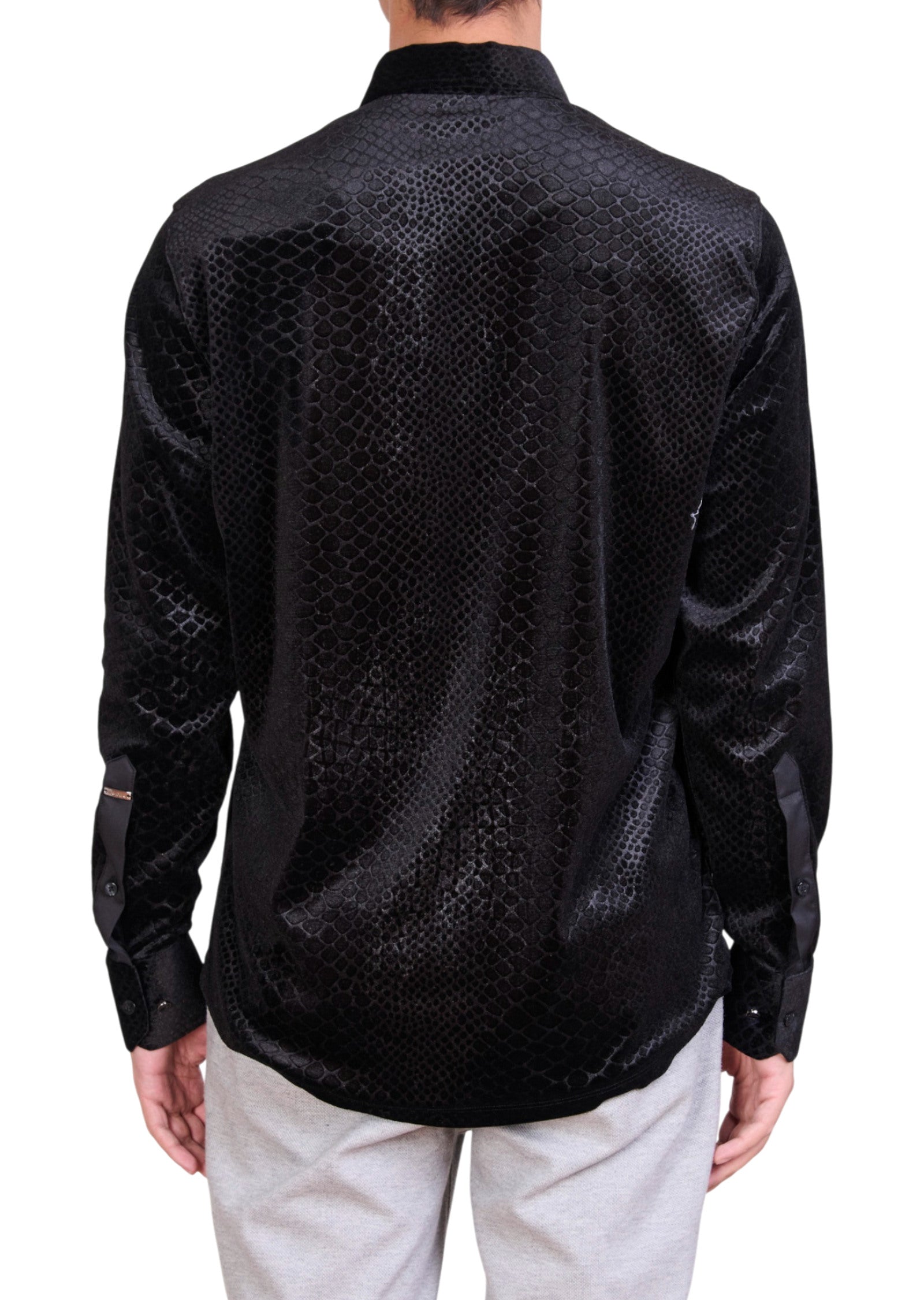 - Plush, dense-pile velvet creates a delicious texture that will make you love this button-up shirt. A spread collar and long sleeves keep you looking put-together and polished