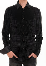 - Plush, dense-pile velvet creates a delicious texture that will make you love this button-up shirt. A spread collar and long sleeves keep you looking put-together and polished